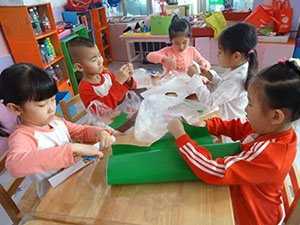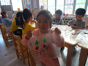 今天,中三班开展了一节有趣的手工活动。小朋友们在老师的指导下运用剪、贴、撕、画等多种技能有创意地装饰塑料袋。大家奇思妙想自由选择材料,制作出了自己喜欢的作品,有小动物头、水果等等。瞧,我们的作品多棒啊!活动中不仅发展了小朋友的创造力还体验了做做玩玩的乐趣。真是一举两得呢!