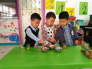 今天,我们准备好了红、黄、蓝三种颜料,还有滴管、试管,让小朋友们自己动手做实验。将两种颜色滴入同一个试管,晃一晃,发现其中的变化。小朋友们兴趣很浓厚,也学到了关于三原色的知识,是一个很棒的活动吧!