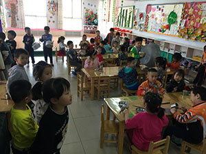 音乐会上有各种乐器奏出美妙的音乐,漂亮的乐器加上演奏家们熟练的技巧奏出好听的声音。今天我们也来寻找一下教室里美妙声音,小朋友们突发奇想、到处寻找,不一会一场演奏会就准备就绪了,杯子、盘子、盆子、铁壶、地板、桌子、腿、手......开始奏乐!
