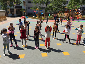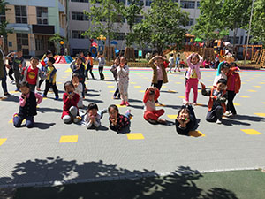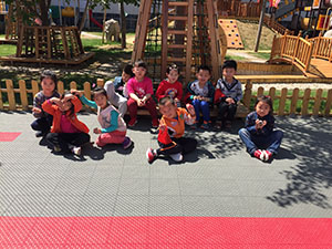 五一过后幼儿园里大变样,五颜六色的地板,配上漂亮的小山凉亭、还有各种各样的好玩的大型玩具,像极了游乐场,每天早上盼着早早的来到这里,我们欢乐的唱、快乐的跑,幼儿园的生活真是太幸福啦!