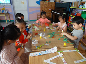 今天,中三班开展了一节好玩的艺术活动。小朋友们在老师的指导下,尝试利用各种颜色的纸条通过卷、粘、折的方法,制作有趣的图案或手工作品。大家的作品个个都别出心裁、天马行空。小朋友们表现的棒极了!活动中不仅发展了小朋友的小肌肉动作,还体验了用纸条创作的乐趣。你也快来动手做做看吧!