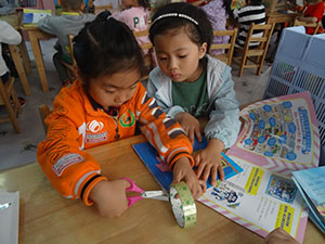 爱护图书是一种文明习惯,也是一种良好的阅读习惯。今天,中三班的小朋友在老师的指导下,亲自动手拿起剪刀、胶带、订书机为班级图书角的图书进行修补。瞧!小朋友们各个细心粘贴,一本本图书焕然一新,书角不翘了,纸张不掉了,就连封面破损的地方也粘贴好了……小小的图书修补活动让小朋友学习了爱护图书的方法,也产生了爱护图书的意识。