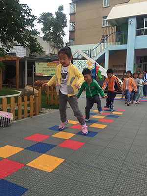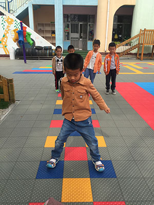 今天老师带着我们进行户外游戏《跳房子》,利用场地的色块练习单脚站立并连续跳跃,通过这个游戏活动不仅锻炼了幼儿身体协调的发展,还调动了孩子们热爱运动的积极性,孩子们玩的不亦乐乎!