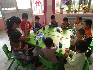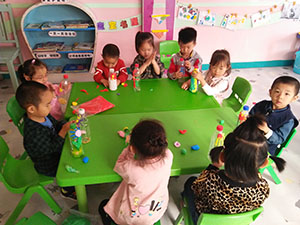 现在瓶子里装点沙子或豆粒,使瓶子能站稳,然后拿出太空泥,选择喜欢的颜色,装饰漂亮的图案,可以是海底世界,也可以是花或大树,按照自己的意愿装饰瓶子。在这个过程中,孩子们丰富了想象力,也锻炼了动手能力,最重要的是,装饰完成的瓶子让孩子们很有成就感。