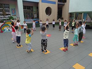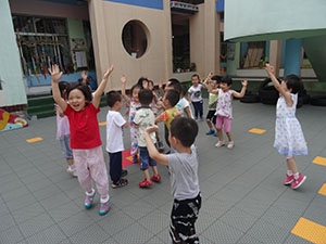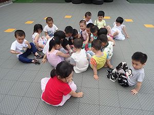 今天小三班的小朋友们在老师的引领下来到户外,开始有趣的多变泡泡。瞧!小伙伴们不断变换着泡泡的形态;时而变大;时而变高;时而变矮。锻炼着身体的素质的同时还增进小伙伴们团结协作之情。欢迎来小三班参加游戏活动哦!
