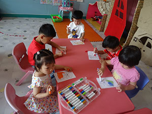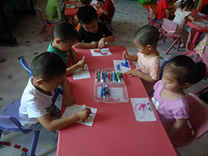 今天,小四班小朋友欣赏了各种各样的香包,,知道了香包可以起到杀除病菌,清爽神志的作用, 同时也了解了佩带香包是端午节的一种风俗习惯.孩子们用自己的方式绘画了香包,萌发了幼儿对民间美术品制品的兴趣。