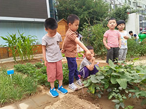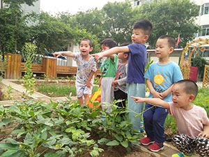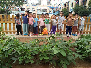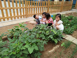 早上,小朋友们发现小菜园里豆角开花了,非常高兴,所以我们一起去看花了。小朋友们找到紫色的花,闻了闻,说太难闻了就捂住了嘴巴。哈哈,太有趣了。