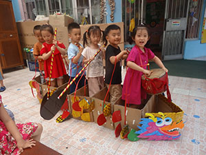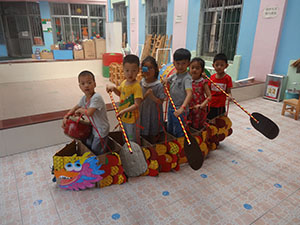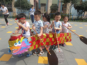 端午到,划龙舟。端午节划龙舟一直是中华民族千百年来的风俗习惯。今天我们中四班为了迎接即将到来的端午节,特意做了一艘龙舟,我们小朋友们齐心协力,划得还挺快呢!