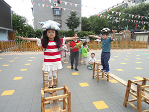 今天,我们中三班小朋友开展了一节有趣的健康活动。小朋友们在老师的带领下,练习在平衡木上头顶沙包走并保持身体平衡。大家大胆练习尝试,活动中不仅锻炼了幼儿的平衡能力,还体验了头顶物品走平衡木的乐趣。你也快来加入我们吧!