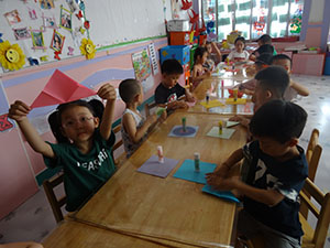 今天,中三班开展了一节好玩的手工活动。小朋友们在老师的指导下,通过折、压、捏、搓等多种方法把纸折制成漂亮的小雨伞。活动中不仅发展了小朋友的手、眼、脑协调并用的能力,还体验了成功的喜悦。你也快来动手折折看吧!