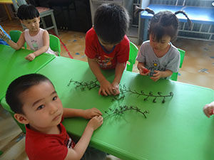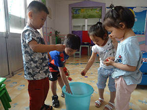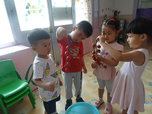 小五班孩子对一串串西红柿进行点数、观察大小并帮助老师把它择下来,锻炼了孩子们的点数能力、培养对数字的兴趣,养成爱劳动的好习惯。