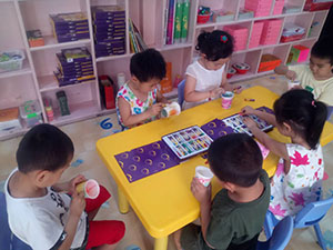 今天,小三班的小朋友们和纸杯做游戏喽。我们用纸杯做话筒,一个对着纸杯说另一个放耳朵上听,感觉真有趣,和平时说话可不一样呢!纸杯可以搭高楼,可以搭宝塔,你也来试试吧。还有的小朋友給纸杯换上漂亮的衣服,里涂涂、外涂涂,想怎样装饰都可以,经过我们的打扮,一个个纸杯更漂亮了,有兴趣你也可以试试哦!