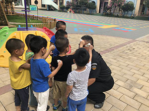 今天小四班的小朋友进行活动《小汗珠在哪里》。小朋友们了解身边冒着酷暑工作的人们的辛劳。小朋友们拿出自己的纸巾为暑天辛苦工作的人们擦擦汗,并说一句“叔叔阿姨你们辛苦了”培养了小朋友学会感恩,尊重并珍惜他们的劳动成果。