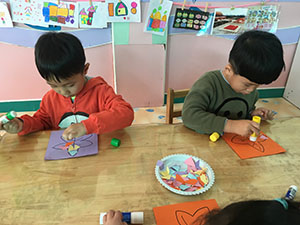 世界上没有两片完全相同的树叶,这句话在我们中一班的艺术活动“独特的树叶”中得到了完美的展现,小朋友们根据自己的想法,利用各种形状的碎纸片拼接成了各种好看的树叶,每一片都不尽相同。此活动发展了幼儿的想象力,提高了幼儿的审美能力,锻炼了幼儿手部粘贴能力。