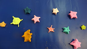 今天中三班的小朋友们在教室里,一起动手制作好玩的五角星。看小伙伴们认真的思考着,想象着捏什么样子的、什么颜色的?瞧!不一会儿的工夫小伙伴们就把五角星捏出来啦!发展了想象力、手眼协调能力,更是增加了乐趣。欢迎大家来中三班欣赏五角星。