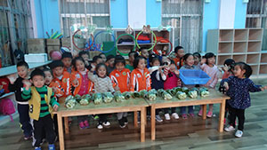 “卖菜喽,卖菜喽,纯绿色,无公害!”随着中四班小售货员们一声声热情、嘹亮的叫卖声,活动开始啦!新鲜的蔬菜吸引着围观的家长们,他们都乐的合不拢嘴!
