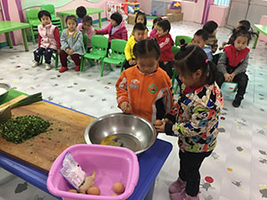 今天我们吃到了世界上最好吃的油菜饼,因为这是我们自己做的,老师说:“自己动手,丰衣足食”,早早的我们去菜地摘了新鲜的油菜,拿回来后一片片叶子摘好,让后将他们清洗的干干净净,因为我还太小,所以后面要用菜刀的工作教给了老师,老师将油菜切成小小的,我们把鸡蛋打在盆里,这鸡蛋壳真不好打开,小心翼翼的还是弄得难受都是,老师将鸡蛋、油菜、面粉还有盐放在一起,我们一起搅呀搅,锅里放上油,油很快就热了,将搅好的糊糊放入锅中一点,一转眼油菜鸡蛋饼就成型啦!我吃着自己动手做的饼别提多香啦,最后我们把世界上最好吃的饼分享给其他老师和小朋友,他们都夸赞我们的饼真香!真是愉快的一天呀。