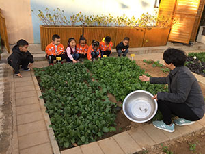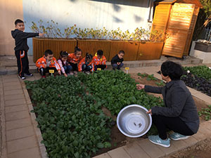 午后的阳光照在我们身上,暖暖的很舒服。我一起去小菜园看看菜宝宝,看着苔菜和油菜长得好茂盛,它们你挤着我我挤着你,于是我们今天就帮它们来间苗,让长大的菜宝宝快出来,给小的菜宝宝一些空间,大家开始间苗啦,不一会功夫,一大盆青菜被我们拔出来,抬着一大盆绿油油的青菜真是开心,因为这可是我们自己种的!