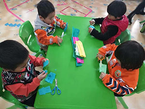 小四班的孩子们学习用剪刀的方式,学习用彩条做动作,孩子们手中挥舞着漂亮的小彩条,激发了孩子们的表现欲望,小四班的孩子们玩得开心极了.