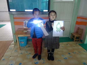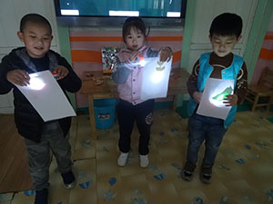今天,大三班的小朋友制作了有趣的简易皮影。小朋友根据自己的喜好,剪出物体轮廓,在通过手电筒的照射就制作成了简易的皮影。哇,这位小朋友投射出的是一位小公主;这位小朋友投射出的是房子;这位小朋友…
