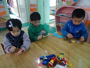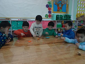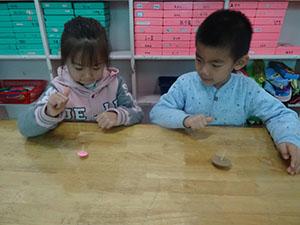 “小陀螺,踮起脚尖转呀转…”今天,小朋友用自己所带的圆形、长方形、梯形和三角形自己制作了陀螺。哇,圆形的陀螺转的最好。通过此次活动,幼儿探究了影响陀螺旋转的因素,体验了玩陀螺的兴趣!