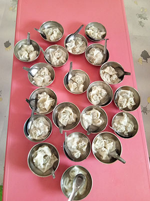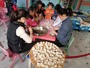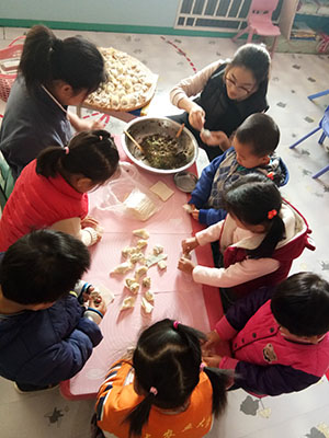 馄饨是中国汉族的传统面食。今天,小三班的孩子们来包馄饨啦,馄饨的馅可是用我们自己种的小白菜做的呦。先把小手洗干净,在老师的指导下,孩子们有模有样的包起馄饨来。看!我们包的像不像?最后,小朋友还品尝了自己亲手包的馄饨,真香呀!