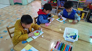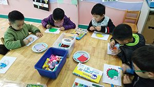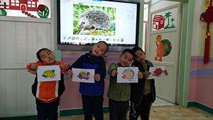 中一班请来了一位动物朋友-小刺猬,孩子们共同了解小刺猬的外形特征和生活环境,知道了小刺猬的自我保护方式和运送食物的本领;之后孩子们用油画棒进行绘画,用剪刀剪出各种果子黏贴在刺猬的背上。本次艺术活动锻炼了幼儿动手操作能力和创新能力。