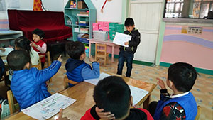 今天孩子们带来了与父母共同制作的‘回家的路’的路线图,孩子们纷纷上台来介绍如何从幼儿园回到家的路线,包括路上经过的商场、楼房、路灯等建筑物都有所体现。大家还相互交换路线图,与同伴分享路线图。本次活动锻炼了幼儿的收集能力与观察能录。