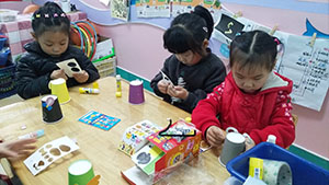 今天孩子们运用彩色的小纸杯制作可爱的小动物,孩子们根据材料进行匹配,最后黏贴在纸杯上,本次手工操作活动锻炼了幼儿动手操作能力和激发幼儿的创造力,提高操作的趣味性和增强幼儿的自信心。