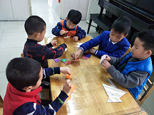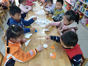 小陀螺,转起来——今天小朋友们带来了好多图形,有三角形、长方形、圆形、正方形,快快猜一猜要干什么!原来是制作小陀螺呀!先取一根火柴棍和一个孔打在中心的圆形陀螺面,将火柴棍插入小孔,并把陀螺面调整到轴的顶端,转一转,再依次往下调整,看陀螺面在火柴棍的哪个部位陀螺旋转的时间最长。通过这次活动,让幼儿感知陀螺旋转时间长短与陀螺面的形状、陀螺的中心等因素的关系,提升探究意识与能力,激发幼儿自己动手制作陀螺的兴趣。