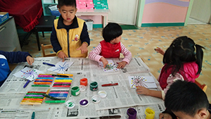 蒲公英,拥有短暂的美丽。孩子们用绘画的方式将蒲公英的美留住,运用丙烯颜料,选择自己喜欢的颜色用手指点在作品上,简直美极了。点画活动锻炼了孩子们的动手操作能力和审美能力。