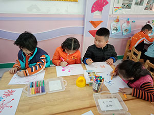 冬天到了,下雪了。今天中二班的小朋友们一起绘画小雪花。