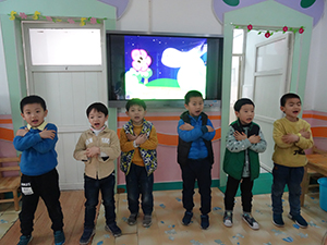 春天来了,风儿跟着妈妈一起出去玩,大自然的美景吸引到了风儿,可当他想回家的时候却找不到妈妈了,他去问小树,问小花,要给妈妈捎句话,捎什么话呢?快来听听我们大三班小朋友演唱的歌曲你就知道了。小朋友们不仅听了风儿找妈妈的故事,还学会了唱准休止符和弱起旋律呢!你也快来加入我们一起表演吧!