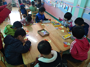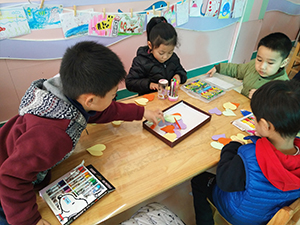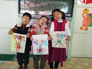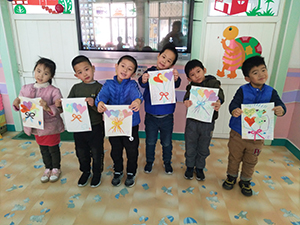 根据中班幼儿年龄特点设计本次手工制作活动“送妈妈的礼物”,孩子们将剪下来的心形卡片黏贴在画纸上,运用油画棒进行添画,再粘贴上蝴蝶结,孩子们很用心的装饰心形卡片,有的画上妈妈最爱的口红,有的画上妈妈最爱的裙子。本次活动锻炼了幼儿动手操作能力和丰富的想象力。