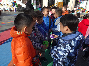 和爸爸妈妈一起将鸡蛋宝宝用各种方法包裹好后,我们带在身上来到幼儿园。这一整天每个小朋友都要带着它,照顾好自己的鸡蛋宝宝。小朋友寻找保护蛋宝宝的多种方法,还给自己的蛋宝宝画上了可爱的表情。通过这次活动,感受到妈妈对自己浓厚的爱,体验了保护某一事物的责任心。最后小朋友们分享了小时候妈妈是怎样爱护自己的,并且探索了蛋宝宝完好和破损的原因,再次体会到妈妈保护宝宝的辛苦。