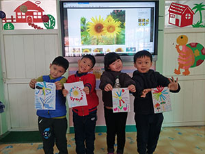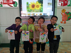 春风和煦,暖暖的春天来了。今天中一班的小朋友在制作太阳花,用油画棒在画纸上画出花芯,用剪刀剪出自己喜欢的花瓣,有的剪黄色,有的剪彩色......孩子们最后还添画了茎和叶、蓝天、草地等,内容丰富,创意无限。本次活动锻炼了幼儿动手操作能力、丰富了想象力。