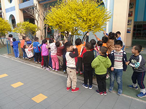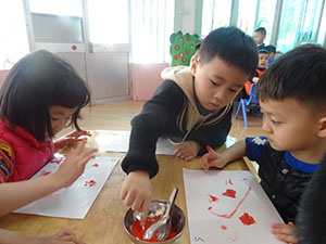 今天中三班的小朋友们在老师的带领下,一起欣赏感知了春天的花儿。先是用小鼻子闻了闻连翘的清香,然后用小手轻轻触摸了花瓣儿。最后大家一起回到教室里动手创作自己喜欢的花儿。哈哈!我们的小手是不是很能干啊!欢迎大家来幼儿园欣赏花儿和画展。