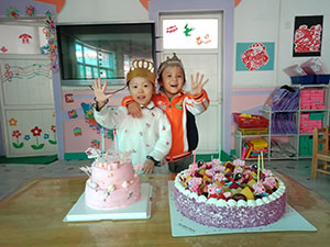 她们拿来了漂亮的蛋糕,学着自己点蜡烛、切蛋糕,与小朋友们一起分享香甜的蛋糕,留些了不一样的回忆。