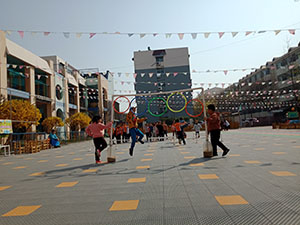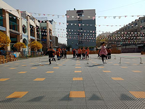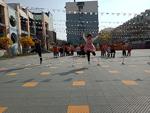 中二班小朋友们学习跨栏的本领了——跨跳障碍物,先助跑,前面的脚抬高跨过障碍物,另一条腿紧接着跟随跨过。看,小朋友们根据讲解跨过去了,哇!像飞起来一样,变成小飞人了!