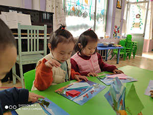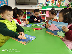 我的好朋友住在大海里,今天它为我介绍了许多它的朋友,孩子们通过学习儿歌感受“一字韵”的特点,用折纸的方式学习对角折“鱼”,锻练了孩子手指的灵活能力,激发了幼儿参与活动的兴趣。