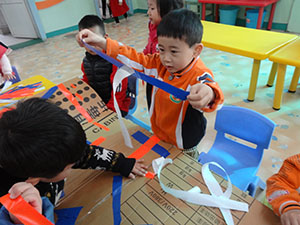 幼儿园新购置了大型消毒柜,包装箱也是大家都爱的好东西。小二班宝贝们在老师的带领下,将纸箱裁剪成50cm款的长条,黏结成大履带。宝贝们又选取了自己喜爱的即时贴,把大履带装饰得更加漂亮。齐头并进,奋勇争先,一起到户外玩起来吧!