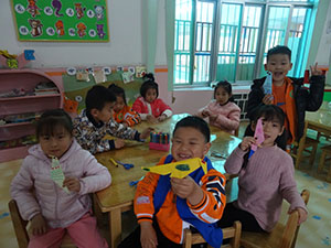 小朋友都喜欢啄木鸟,因为啄木鸟是大树的热心医生,帮助大树取出身体里的害虫。今天我们大三班的小朋友们一起做了有趣的折纸——啄木鸟。想要制作出啄木鸟的身体,首先要折出菱形,小朋友们认真的对折手中的彩纸,一个个整齐的菱形做出来了。然后小朋友分别作出啄木鸟的嘴巴、用剪刀剪出爪子,并为它装饰上漂亮的羽毛,看!可爱的啄木鸟完成了。本次活动小朋友们体验了单菱形的折法,并且熟练地使用剪刀,折纸真是有趣的活动。