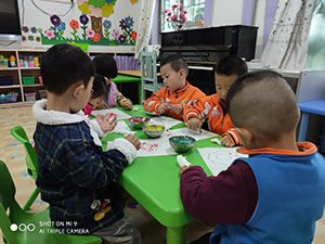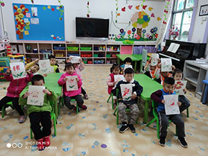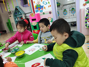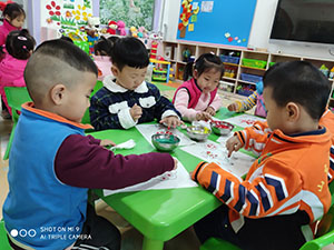 我有一个好朋友,他的名字叫“小点点”,他画的画和我有点不一样,引导幼儿欣赏作品,感受点彩画的画面效果,感受点彩画的独特的美,孩子们纷纷伸出小手指在画纸上点上彩色的小点点,体验到了点彩画的乐趣。