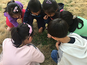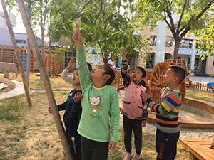 春天来了,春天在哪里呢?我们大一班的小朋友去寻找春天的秘密,来到草地上,草地变绿了,七叶草也钻出来了,七叶草的下面还藏了一只可爱的蚂蚁呢。抬起头,哇!大树的叶子也变绿了,春天真的来了。