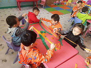 小小飞镖力量大,飞到东来,飞到西。小朋友们你们见到过好玩的彩色飞镖吗?今天小三班的小朋友们和老师一起来制作彩色飞镖,材料简单安全还很有特色,看有色彩鲜艳的彩色皱纹纸,还有轻便安全孩子们可以操作的塑料夹子,孩子们一起开心的投掷,特别好玩,小朋友们欢迎一起来玩吧。