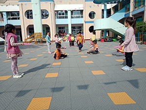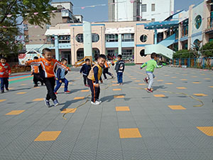 先拿起跳绳,自己跳一跳吧!太难了,我们还是换个玩法,拿起绳子两端,让其他小朋友从低到高依次跳过去;太高了,怎么办?那就钻过去呗!