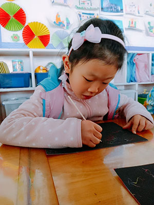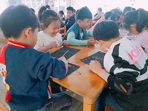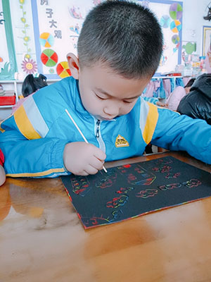 今天大一班的小朋友尝试了一种新的绘画方式——刮画。