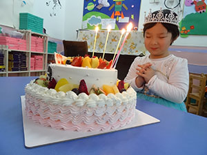 今天是我们中三班的小美女过生日。她就是乐乐,今天五岁了,是个活泼开朗的小女生。大家一起陪着她点蜡烛、许心愿、唱生日歌、留念,最后还一起分享了大蛋糕。在此,中三班所有老师小伙伴一起祝乐乐:健康快乐每一天!
