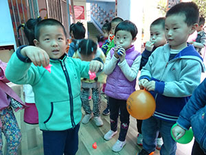 今天中三班的小伙伴们,一起在教室里、教室外面寻找空气。瞧!大家在气球里发现了空气,一松手空气就逃走了,气冲的太满还会爆炸,冲不多不少就正好。最后大家又跑到室外,用塑料袋抓空气,并把它们带回活动室里,玩儿得不亦乐乎。