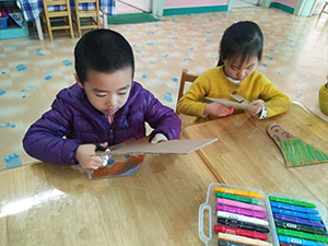 本周以纸为主题,于是孩子们剪下废旧纸箱,剪成随意的形状,来创造性的设计表情,有的脑袋是三角形的,有的是不规则形状的;孩子们发挥想象力进行设计,有趣极了。本次活动培养幼儿的创造能力和动手操作能力。